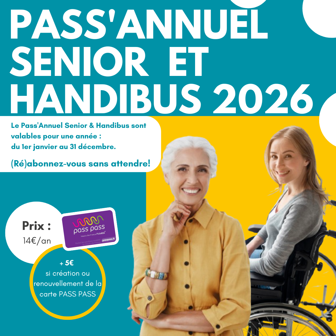 (Ré) ABONNEZ VOUS SANS PLUS ATTENDRE AU PASS ANNUEL SENIOR & HANDIBUS Vous avez plus de 65 ans et/ou avez un taux d'invalidité > 80% et habitez l'une des 22 communes de l'agglomération boulonnaise : ⏩ Voyagez en illimité en 2026 pour seulement 14€.🚍 Le Pass'Annuel Senior et/ou Handibus sont des abonnements qui vous facilitent l'accès au transport Marineo et facilitent vos déplacements au quotidien ! Déplacez vous en illimité !👇 ⏩OPTEZ POUR LE PASS ANNUEL SENIOR ET HANDIBUS! Pour vos sorties en famille, entre ami(es), pour pratiquer vos activités, pour vos courses, pour vos loisirs...Voyagez en illimité sur l'ensemble du réseau Marinéo, à petit prix et en toute liberté du 1er janvier au 31 décembre. Pratique, facile, rapide, économique, avec le Pass'Annuel Senior et Handibus, déplacez vous partout, tous les jours de l'année (même les Week ends et jours fériés) et même pendant les vacances scolaires. Marinéo est là pour vous conseiller !👇 Quels justificatifs à fournir? Un justificatif de votre CCAS Pour obtenir ce document, rendez-vous au CCAS ou à la mairie de votre commune muni de votre carte d’identité et d’un justificatif de domicile de moins de 3 mois. Une pièce d’identité Une photo d’identité : Pour toute réalisation de votre carte en Boutique Marinéo : Les agents de vente feront directement votre photo sur place Uniquement si votre carte Pass Pass est en fin de validité et s'il s'agit d'un renouvellement. Votre carte d'invalidité si souscription au Pass Annuel Handibus Votre règlement : sur la E-boutique : paiement uniquement par carte bancaire au comptant par courrier : paiement uniquement par chèque En Boutique : tout paiement autorisé Lors de votre premier achat de Pass’Annuel Senior et/ou Handibus, si vous ne disposez pas de carte Pass Pass, il vous sera demandé 5€ pour la création de la carte. La carte Pass Pass est valable 4 ans. À quel prix ? ⏩UN RÉSEAU QUI S'ADAPTE À VOUS, ÇA N'A PAS DE PRIX ! 🔸Le Pass'Annuel Sénior et Handibus vous permet de bénéficier d'une formule d'abonnement attractive au prix de : 14€/an - du 1er janvier au 31 décembre (+ 5€ si création de la carte Pass Pass) Comment en profiter ?👇 Pour charger votre Pass'Annuel Senior et/ou Handibus sur votre carte Pass Pass, plusieurs solutions s'offrent à vous 👇 🔸Rendez vous sur notre E-Boutique : Simplifiez votre expérience et achetez votre abonnement en ligne, en un seul clic grâce à notre e-boutique. 💻 (Attention, le paiement ne peut se faire uniquement qu'au comptant par carte bancaire. Si toutefois, vous souhaitez effectuer le règlement chèque, rendez vous en Boutique 👇). 🔸Envoyez par courrier votre bulletin Achetez votre abonnement en nous renvoyant le bulletin de réabonnement reçu préalablement par courrier grâce à l'enveloppe retour jointe, sans l'affranchir avant le 1 décembre 2025. (En cas de dossier incomplet, veuillez noter que tous les frais relatifs à l’envoi des documents manquants seront à votre charge.) 🔸Rendez vous en Boutique Marinéo : Nos hôtesses sont à votre disposition, pour vous conseiller, vous guider dans vos besoins de mobilité. Dans votre Boutique Marinéo : Centre Commercial de la Liane, Boulevard Daunou à Boulogne sur Mer ⏱Votre boutique est ouverte : Du lundi au Vendredi De 8h30 à 18h30 sans interruption