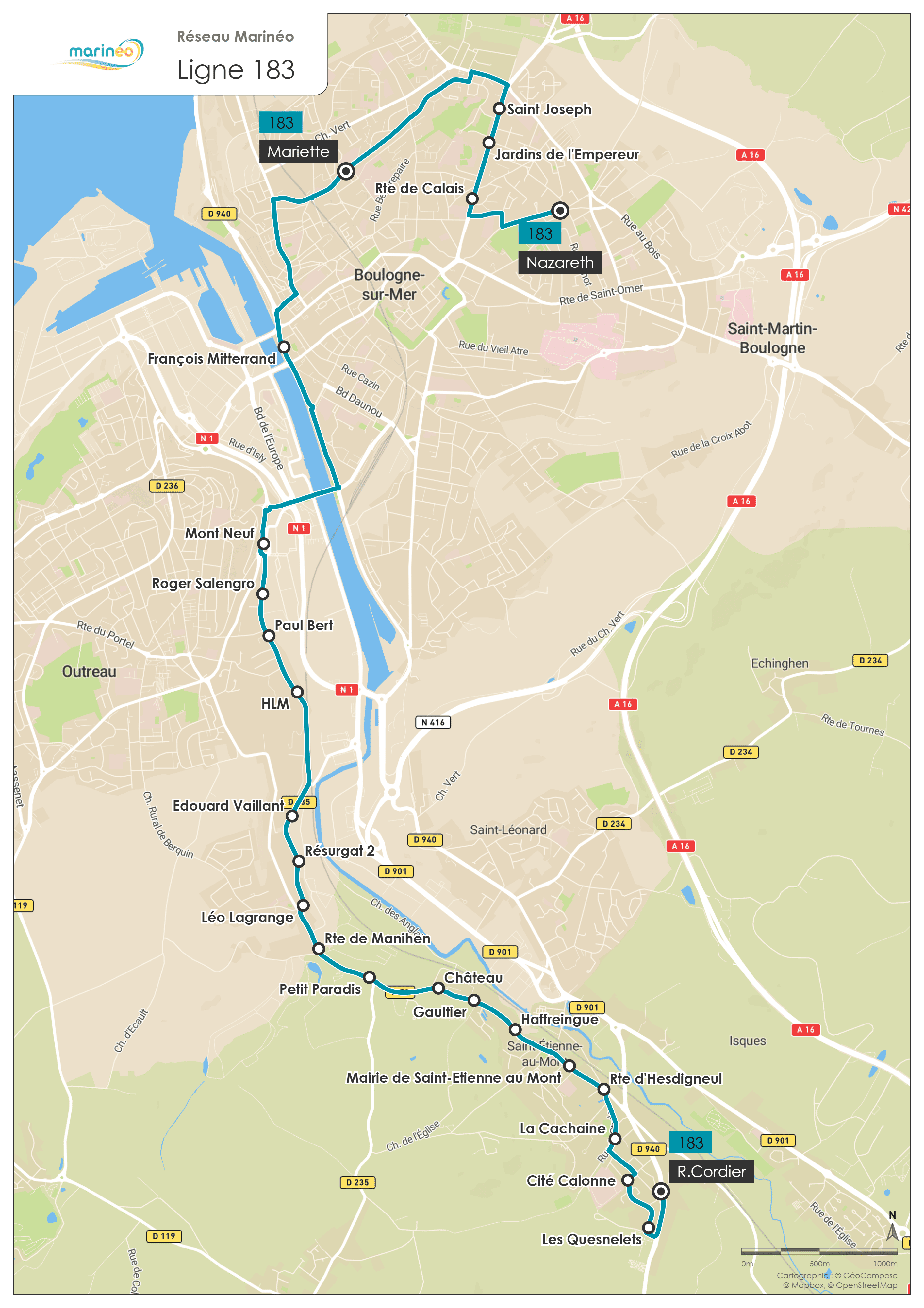 Line 183 - St Etienne au Mont Mariette- Haffreingue- St Joseph- Nazareth 183 LE SAVIEZ-VOUS ? Les lignes 16 à 210 de votre réseau de transport « Marinéo » sont accessibles à tous les usagers du réseau Marinéo et desservent l’ensemble des communes de l’agglomération boulonnaise, reliant écoles, quartiers, commerces, zones d’activités, lieux de loisirs et espaces naturels. Schedules Download the timetables for the school period (from September 1, 2025 to July 4, 2026 inclusive) Download Ligne 183-rentrée Sept 2025.pdf Served town(s) Saint-Etienne-Au-Mont The line is running normally.