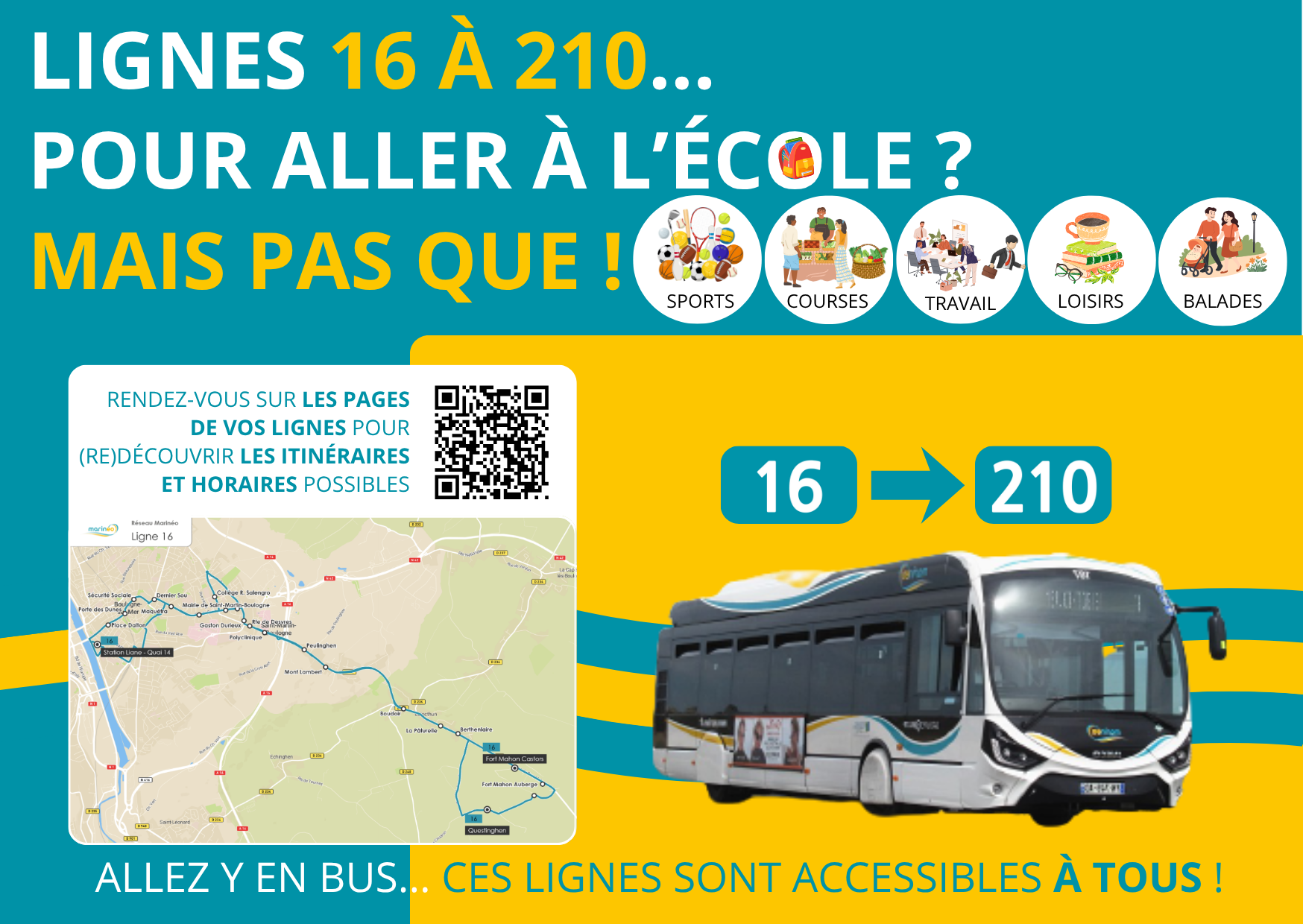 Ligne 16 - Baincthun Collège Roger Salengro 16 LE SAVIEZ-VOUS ? Ces lignes sont des lignes régulières reliant les communes de l'agglomération boulonnaise aux établissements scolaires, mais pas que ... :). Elles ne sont pas réservées uniquement à la cible des scolaires et peuvent être empruntées par le tout public. Horaires Téléchargez les horaires pour la période scolaire (du 1er septembre 2025 au 4 juillet 2026 inclus) Télécharger Ligne 16 -rentrée Sept 2025.pdf Commune(s) desservie(s) Baincthun La ligne circule normalement.